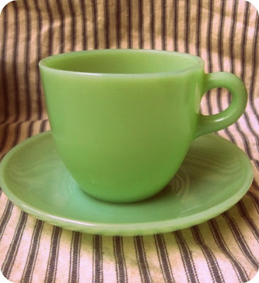4.) Cheery green Fire King Jadeite teacups found while searching on Etsy. You'll never have a bad day if you drink hot tea from a pretty teacup first thing in the morning.