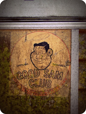 Don't you just love the "Good Sam Club" bumper sticker!? What a piece of work? It's fun to find vintage remnants.