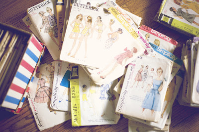 1.) Vintage sewing patterns. I just picked up about 25 different dress, apron, blouse, and knickers patterns at a Palmyra thrift store while I was in Pennsylvania. They were in the FREE bin next to the back door! There were at least 200 of them. I would have taken them all, except I didn't want to be greedy at the church ministry thift shop. Thought I'd let someone else stumble upon the rest of that wonderful collection.