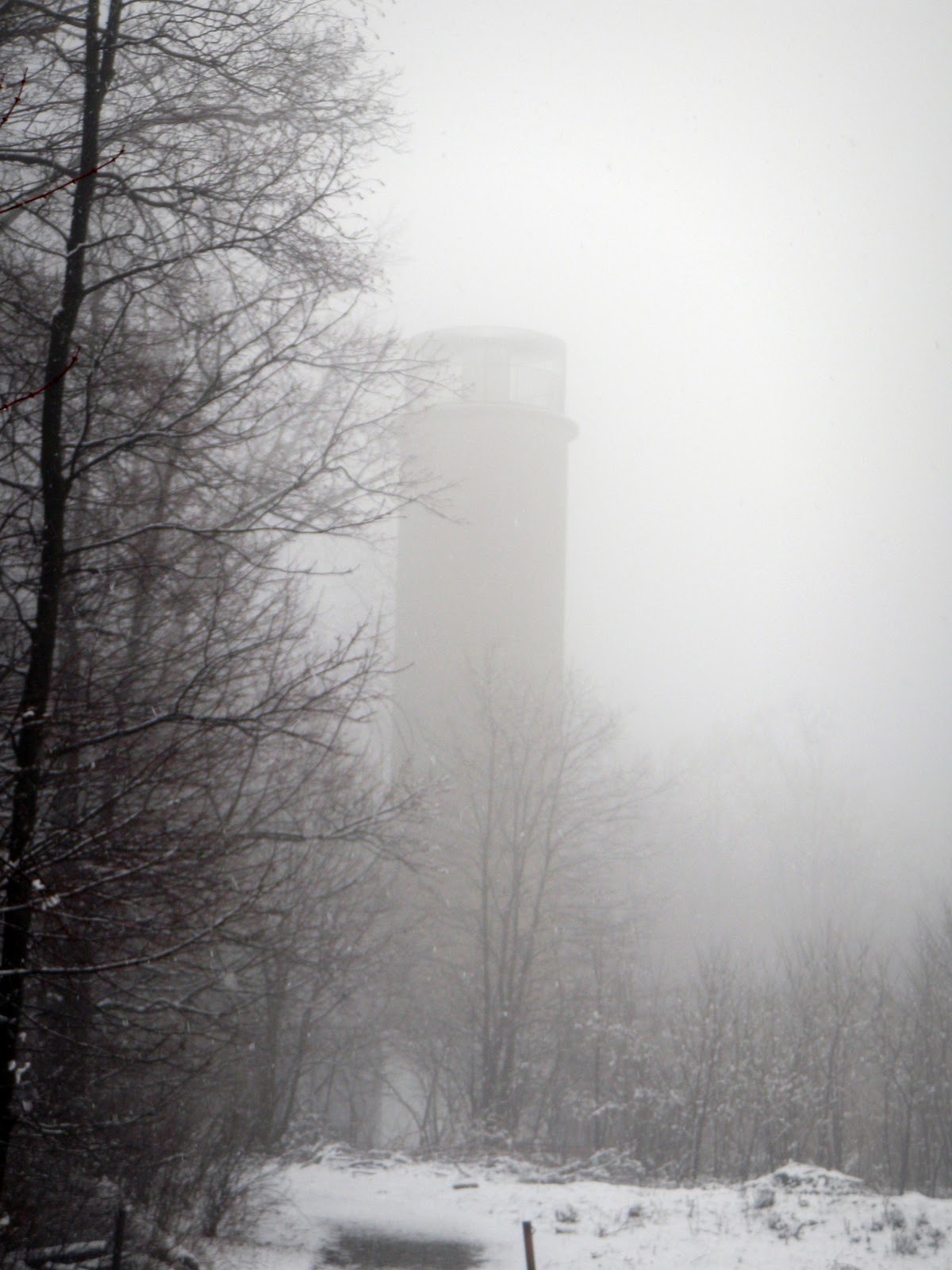 That's the tower right there - hidden behind all of that white fog. It really does hover above all of the surrounding trees. There are 10 separate 10-foot ladders that you climb up (yes, a nice arm workout indeed!) to get to the observation deck up top. The deck is fenced in completely and the view is beautiful. Due to the snow, you couldn't see much of the skyline today, but normally you can see Harrisburg, Lebanon, and Lancaster perfectly fine.