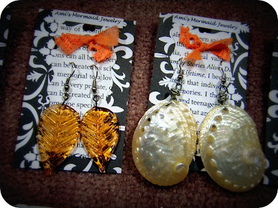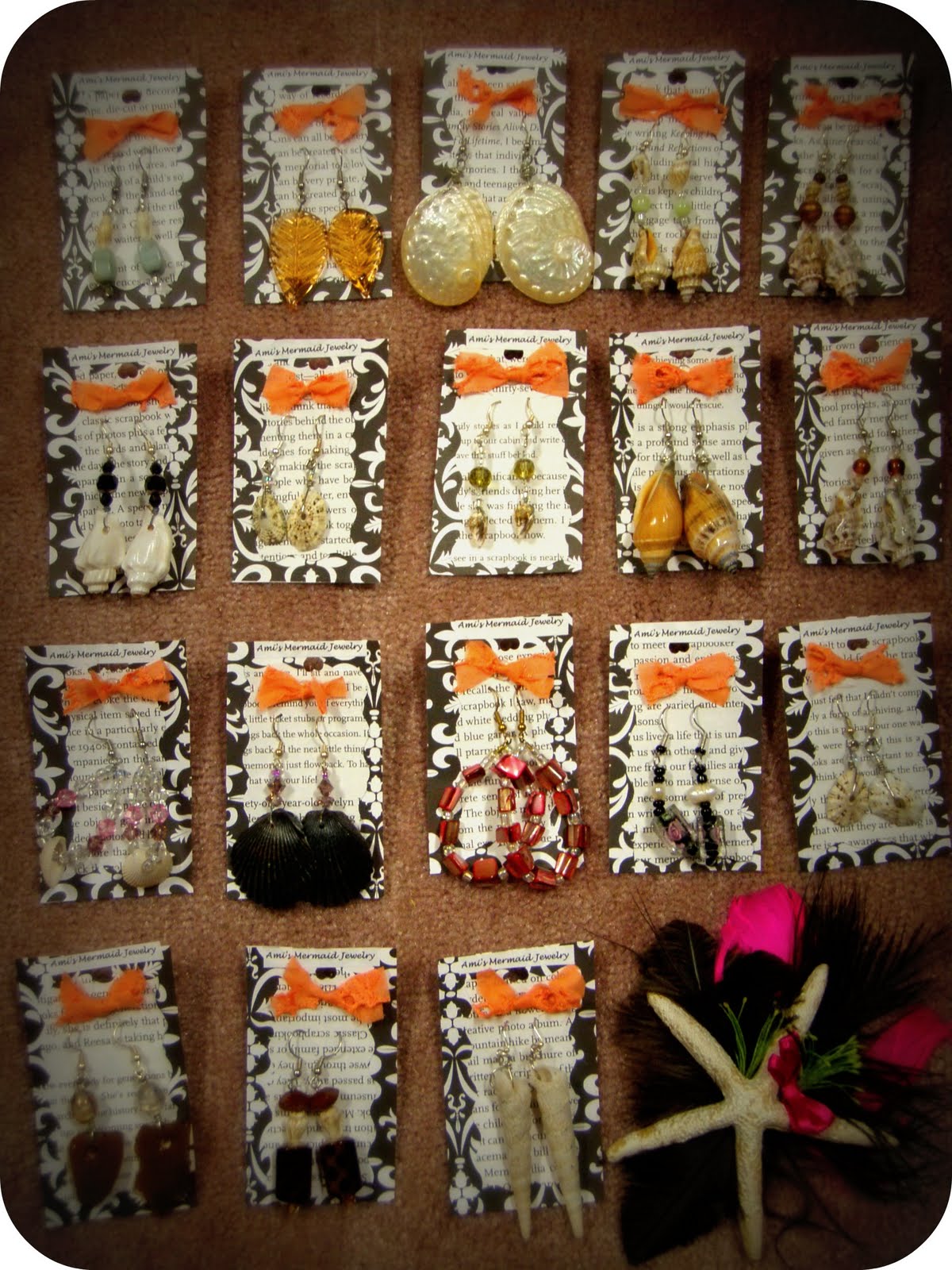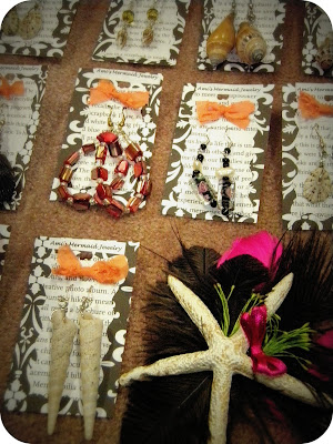 I'm really excited about the amount of jewelry I've been pumping out lately! I feel like I've become kind of a homebody during the week because I've been spending lots of time in my garage workshop. I've been working on a new way of displaying my Ami's Mermaid Jewelry creations. The eclectic little cards are what I came up with...