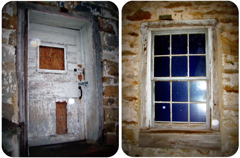 These buildings are currently being preserved by the Elk Creek Area Preservation Society and the Cecil County Farm Museum. These ruins were all boarded up. Look at how many locks there are on that door! The pressed-glass windows even had black fabric backing on the inside so that you couldn’t peek in. I would have loved to see what the inside of these buildings looked like. Too bad.