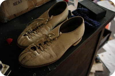 Alright, so maybe there were a few traces of someone once being in this building. Shoes and a bowtie positioned gracefully on an old antique desk...