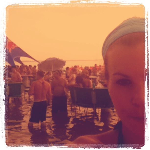You see all of those people? Rediculous, isn't it?! I have to carry a 2.5-foot tray filled with 40 drinks through that crowd every weekend (I honestly just close my eyes, pray everyone moves out of my way, step on people's toes if they don't move, and quickly try to forget about why some drinks may be missing by the time I reach my destination). There are about 80 floating rafts (that serves as bar tables) and 82 tables in that bay water.