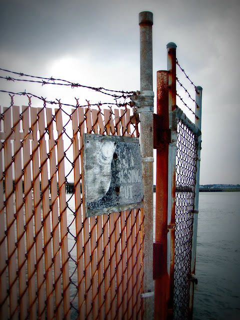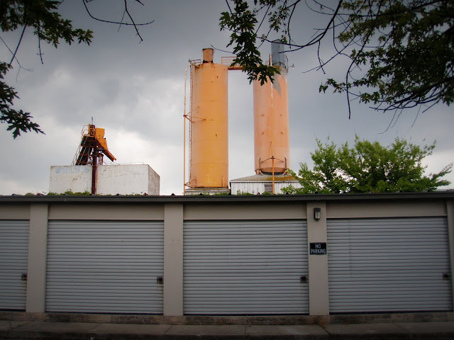 The factory sits directly on the bay next to the pretty blue drawbridge built out of concrete supplied by this old plant. The uniqueness of this highly visible site is easily identifiable. The 2 giant yellow towers shine above the residential houses that surround the property. There are barbed wire fences surrounding the lot and the buildings are boarded up and have been for years. Poison ivy and large thorn bushes also encourage people to stay away.