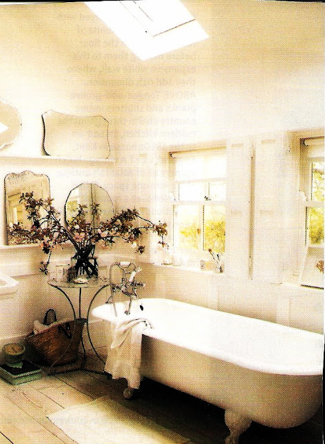 Seems as though I'm attracted to claw-foot bathtubs, tile, intricate mirrors, pedistal sinks, and pops of color. What would you like to have in your bathroom? (Besides a stock piling of all of your favorite beauty supplies!)