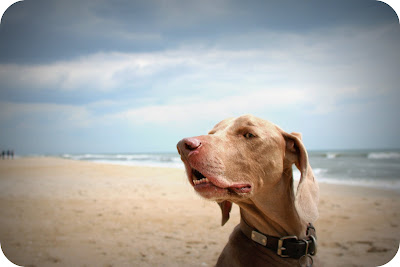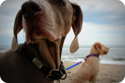 Took the pups to Assateague National Seashore on Saturday morning. That handsome silver Weimaraner is Minx. He stayed with us for the weekend, too. I think he's officially Sandi Doodle's boyfriend. This was Minx's first trip to the beach and Bruce & I think he loved it! Two pups running free on the shore with two very happy owners.