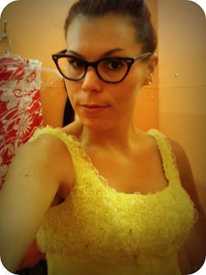 My amiable guest, and his foxy dog, left on Sunday. I did some work around the house, made some new Mermaid Jewelry and went thrift shopping. I picked up three beautiful vintage slips and a brooch at our local Goodwill and tried on so many more items. I was trying not to take all of the vintage goodies out of the store today. I'll let them there for someone else... but if this yellow dress is still there next time I visit - She's coming home with me!