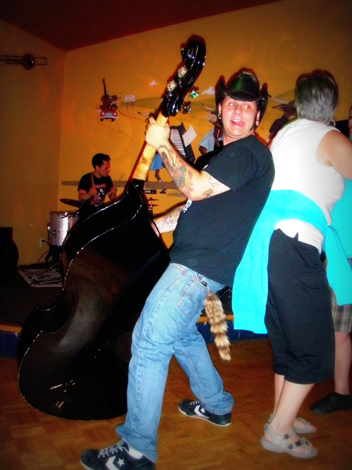The Super Devils were on stage playing some crazy good rockabilly swing music. I love 1950’s style rock and roll. It’s my favorite. This band mixed classic honky tonk with rock and roll to create a play list that kept us all dancing. I’m a sucker for a stand up bass and was over -joyed when the bassist invited us up on stage to try some tricks. So neat. Thanks, Corey!