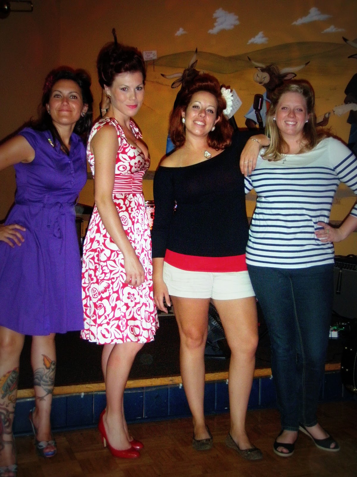 Last Saturday I spent all day serving drinks to hundreds of rowdy people enjoying the spring weather. After mixing up cocktails and dealing with some sloppy drunks for 10 hours, I was more than happy to get out of the house and do something refreshing. My girlfriends and I got dolled up and went to our local tavern, The Steer Inn. Since it was Cruisin’ Weekend and there were tons of retro-American lovers in town, the Steer Inn hosted their 3rd annual Rods & Rockers on Wheels party.