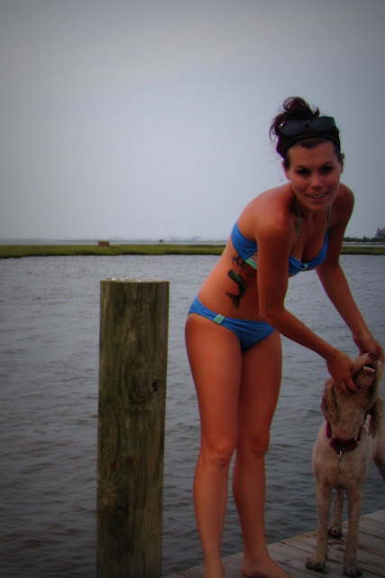 When we were kids, we used to be able to hear dirt bikes and 4-wheelers racing through the woods at the campground. Our yard had backed up the campground's land before our neighborhood grew into what it is today. The land that the campground once occupied was sold a few years ago. Since then, about 6 individual million-dollar houses have been constructed in it's place. There are about 20 vacant lots that have not been purchased yet. Another 142-acres have been set aside as a nature preserve. Included in that preserve is this spot where Sandi and I like to swim and relax on the bay.