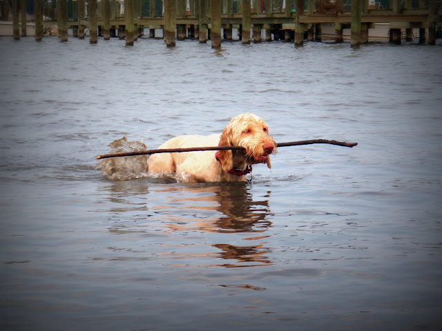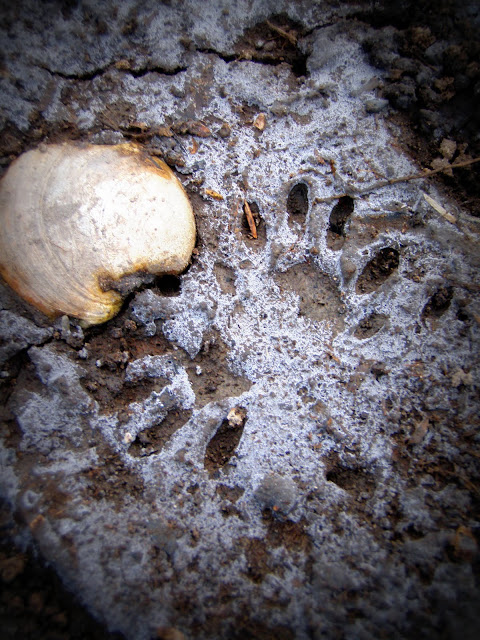 I have this favorite spot. A spot were there is lots of wildlife (like the racoons whose tracks were left in the mud above) and it's quite and peaceful. It's a place where I take Sandi to run around off leash and splash around in dirty marsh water. My mother actually hates it when Sandi and I go here because we always come home covered in grey marsh muck (& it seems we always go there when she's visiting and she feels responsible for cleaning up after us. Oops.). In case you are unaware - grey marsh muck is impossible to get out of white carpet so always be certain to take advantage of your garden hose and rinse off outside before trying to sneak inside (so your visiting mother doesn't freak out).