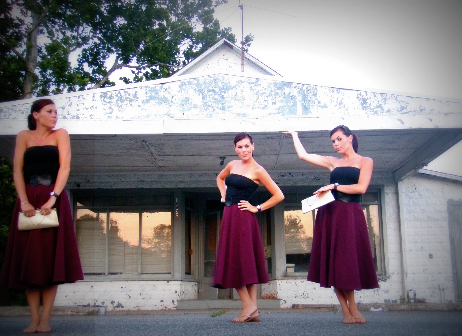 I've noticed that I've been doing the tube-top, circle skirt, thick belt look alot lately. Apparently it's my signature look this season. It's an outfit that's so comfortable, looks chic, is easy to put together but still looks a little dressy. Do you think so?