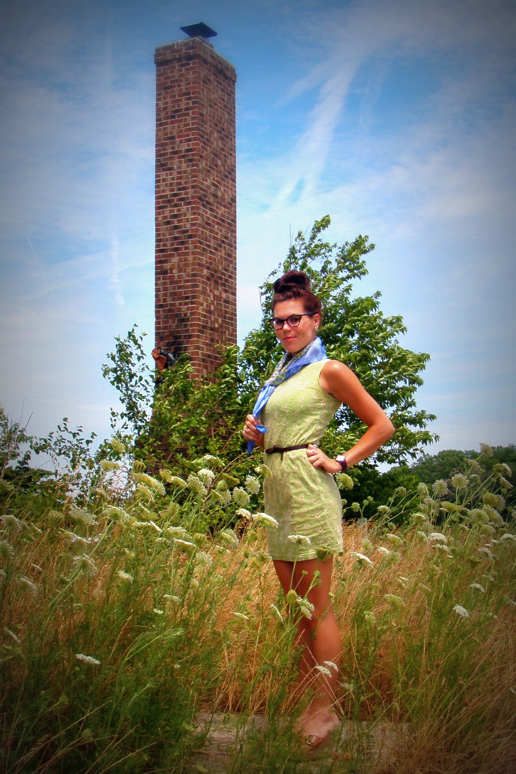 Ta da! Vintage fashion blogging involving an abandoned house site in a pictress setting. Oh, the simple things that amuse me. If you saw a dirt driveway with a lonely chimney standing by itself, wouldn't you feel compelled to investigate? Maybe I'm alone in this quest of constant curiosity that leads me to these wierd places in funky outfits. I hope that you at least 'get a kick' out of reading about my adventures!
