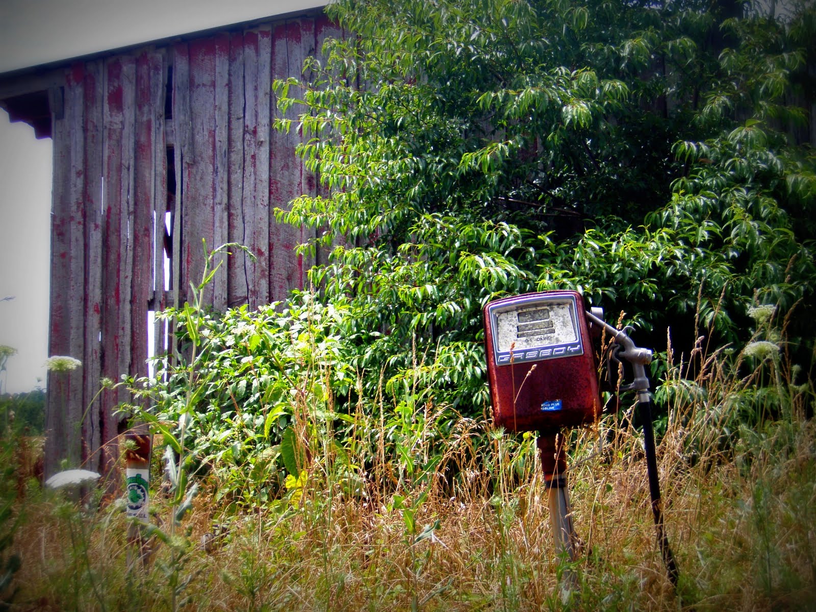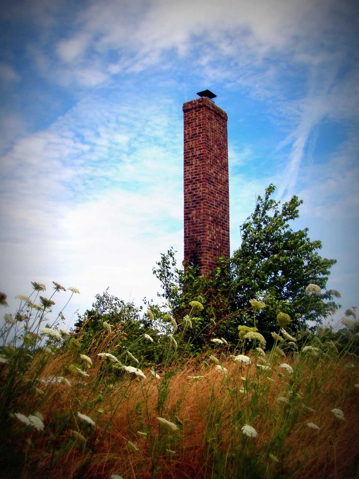I accidentally found this place (& accidentally got poison patches on my shins, also). I noticed a lonesome brick chimney standing by a decaying old red shed with a rusted tin roof. I had to stop to take some pictures. There was a house down by the entrace of the dirt driveway and I was waiting for someone to drive back on a 4-wheeler, tractor, or dirt bike and yell at me but I must have been too quick for them to notice that I was plugging around their property (who knows if it even belongs to them?).