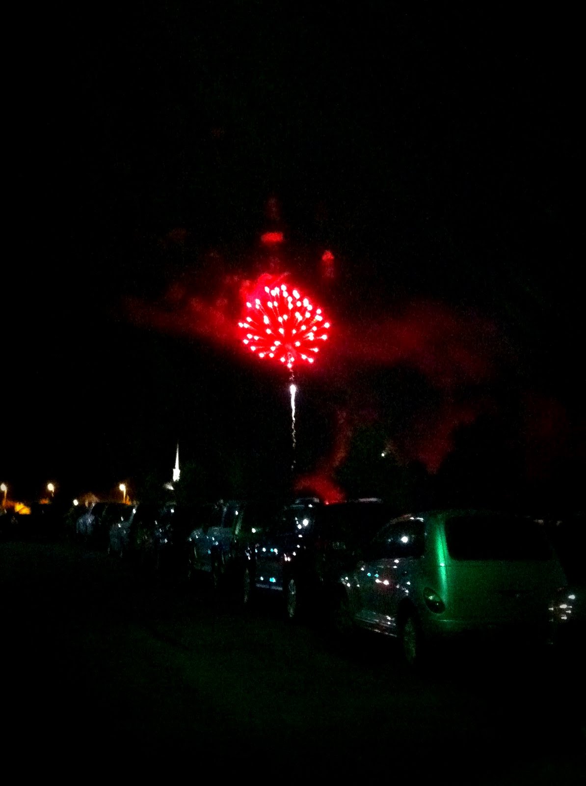 Those fireworks were from one of the best firework shows I've ever seen before. The lights were launched from a barge in the bay and they looked so pretty reflecting off of the bay water. The following pictures are from our little community's fireworks on July 4th. Another great show over a cute public park next to the elementary school.