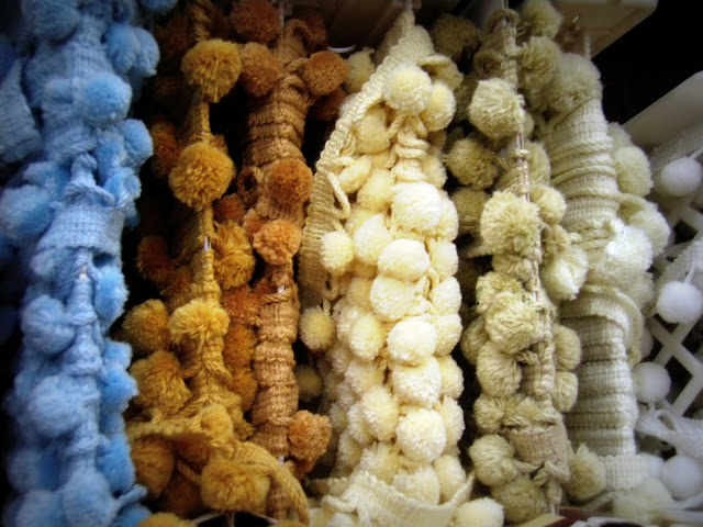 I was also admiring the pom pom selection. I purchased a pom pom maker a little while back and have been making my own pom poms for decorative purposes. It would take me forever to make this many! Even better? These fun mustard yellow poms were only 5 cents each!