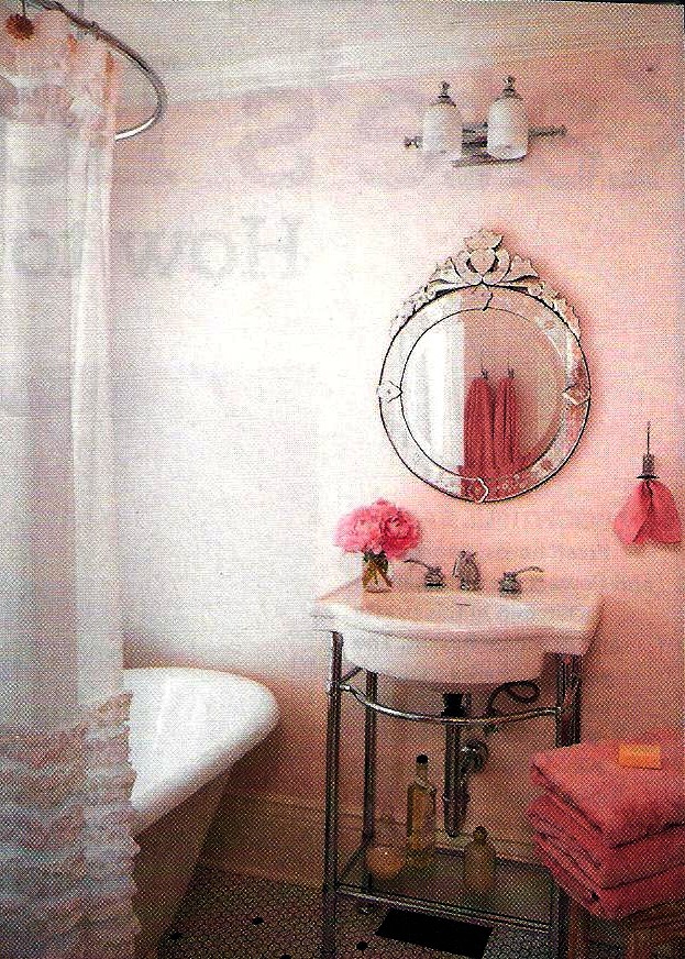Seems as though I'm attracted to claw-foot bathtubs, tile, intricate mirrors, pedistal sinks, and pops of color. What would you like to have in your bathroom? (Besides a stock piling of all of your favorite beauty supplies!)